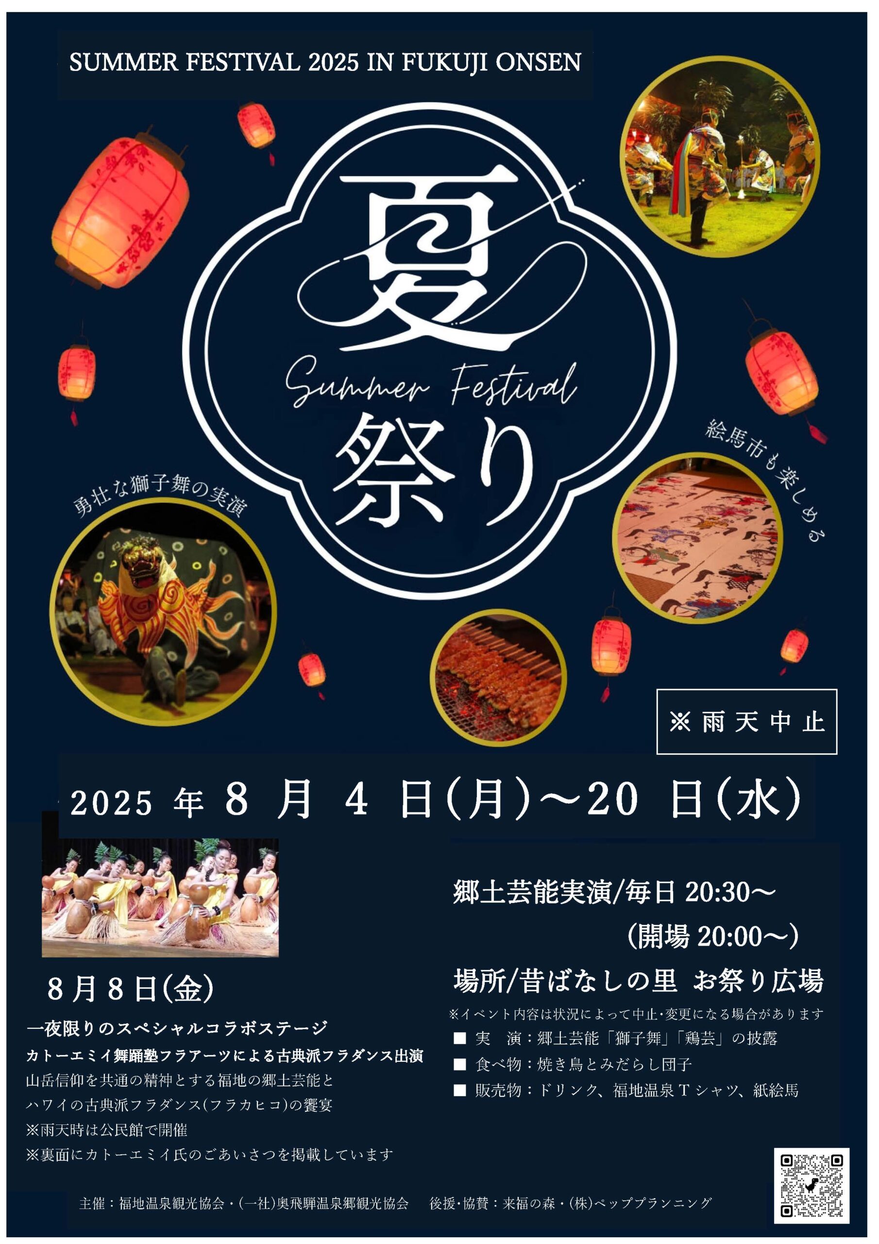【終了】〔福地温泉〕紅葉の街並みライトアップ Posted on 2025年8月22日2025年11月13日 福地温泉では、紅葉の季節にあわせて「街並みライトアップ」を開催いたします。温泉街のメイン通り一帯に広がる木々を灯りで彩り、幻想的な夜の風景をお楽しみいただけます。ご夕食のあとのお散歩に、色づき始めた紅葉と光が織りなすひとときを、ぜひご堪能ください。 開催期間 2025年10月5日(日)~11月5日(水) 開催時間 日没~21時30分(予定) 場所 福地温泉街