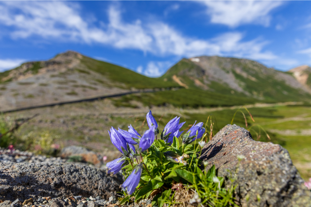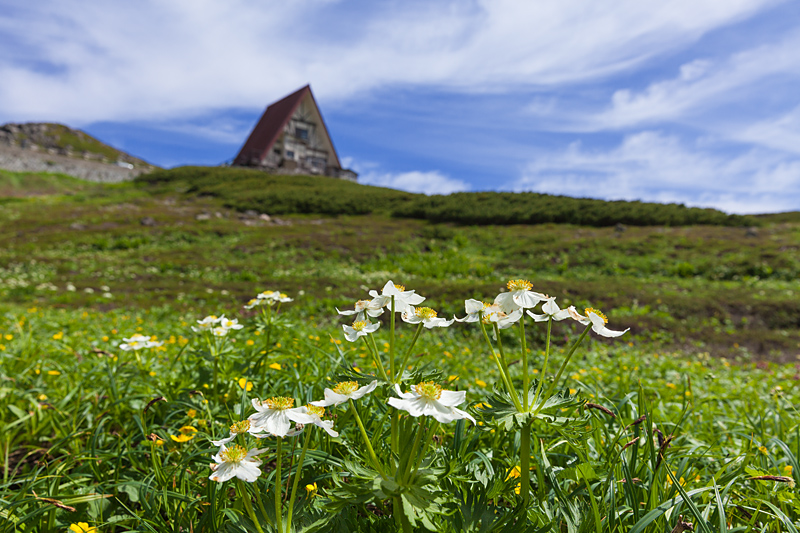クロユリ、ハクサンイチゲ、キバナシャクナゲ、ヨツバシオガマ、アオノツガザクラ、トウヤクリンドウなど30 種以上の高山植物が生育しています。