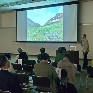 信州大学中村浩志名誉教授からは、乗鞍岳でケージ保護したライチョウを木曽駒ヶ岳に運び、2018年1羽であったのが2024年には198羽に復活した報告や、野生動物による食害、捕食者の増加、地球温暖化、カメラマン等の人の影響、乗鞍岳のライチョウ生息数の減少傾向が課題であるとの提言がありました。