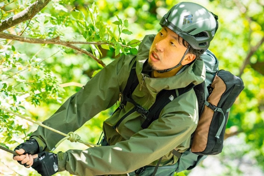 専用の装備を着用し安全確保したうえで、軽度の登攀(沢登り)にチャレンジ。